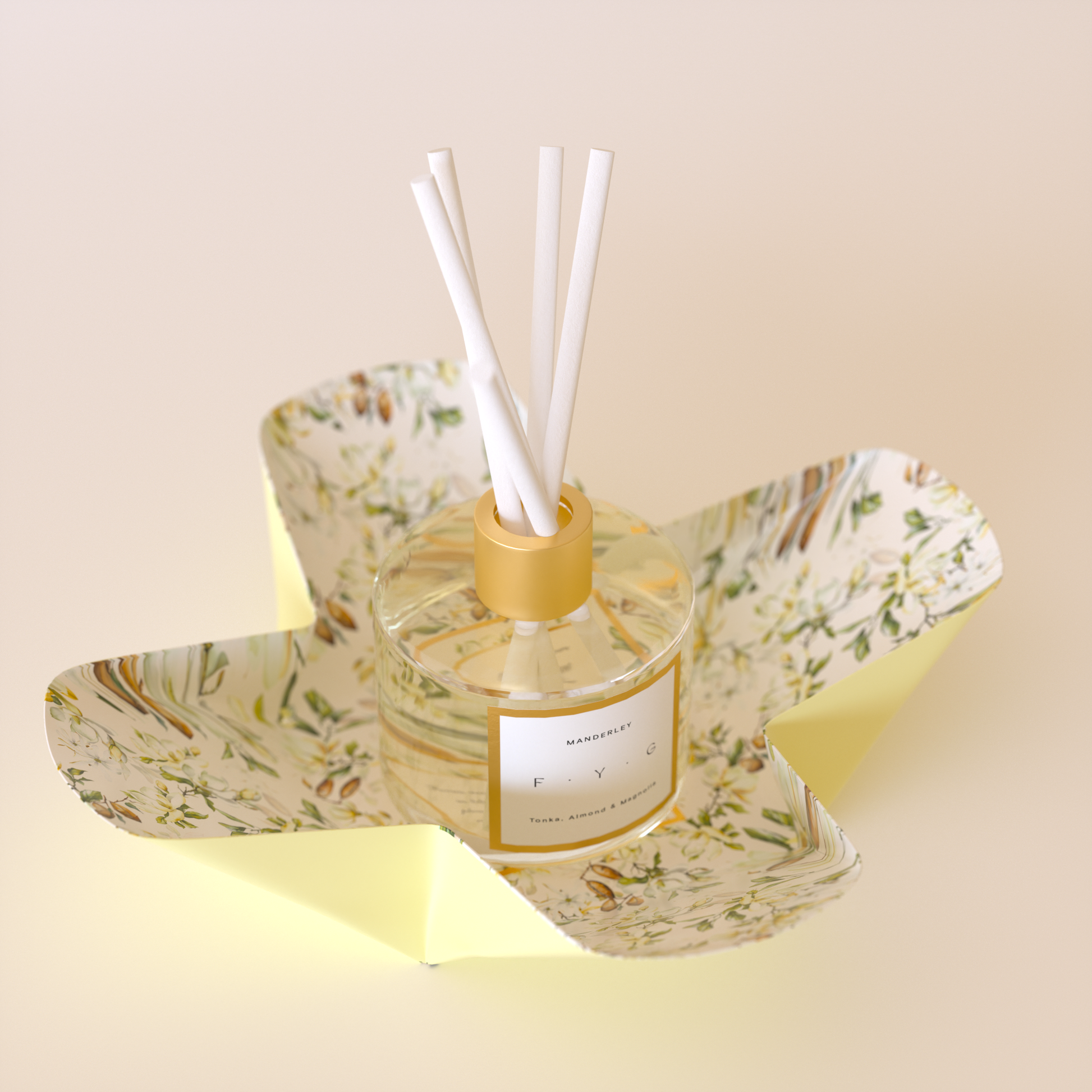 To maximise your FYG experience, uncork the apothecary bottle then insert the reeds provided, making sure to twist them so they cross at the bottom. This should create an inverted cone shape.
